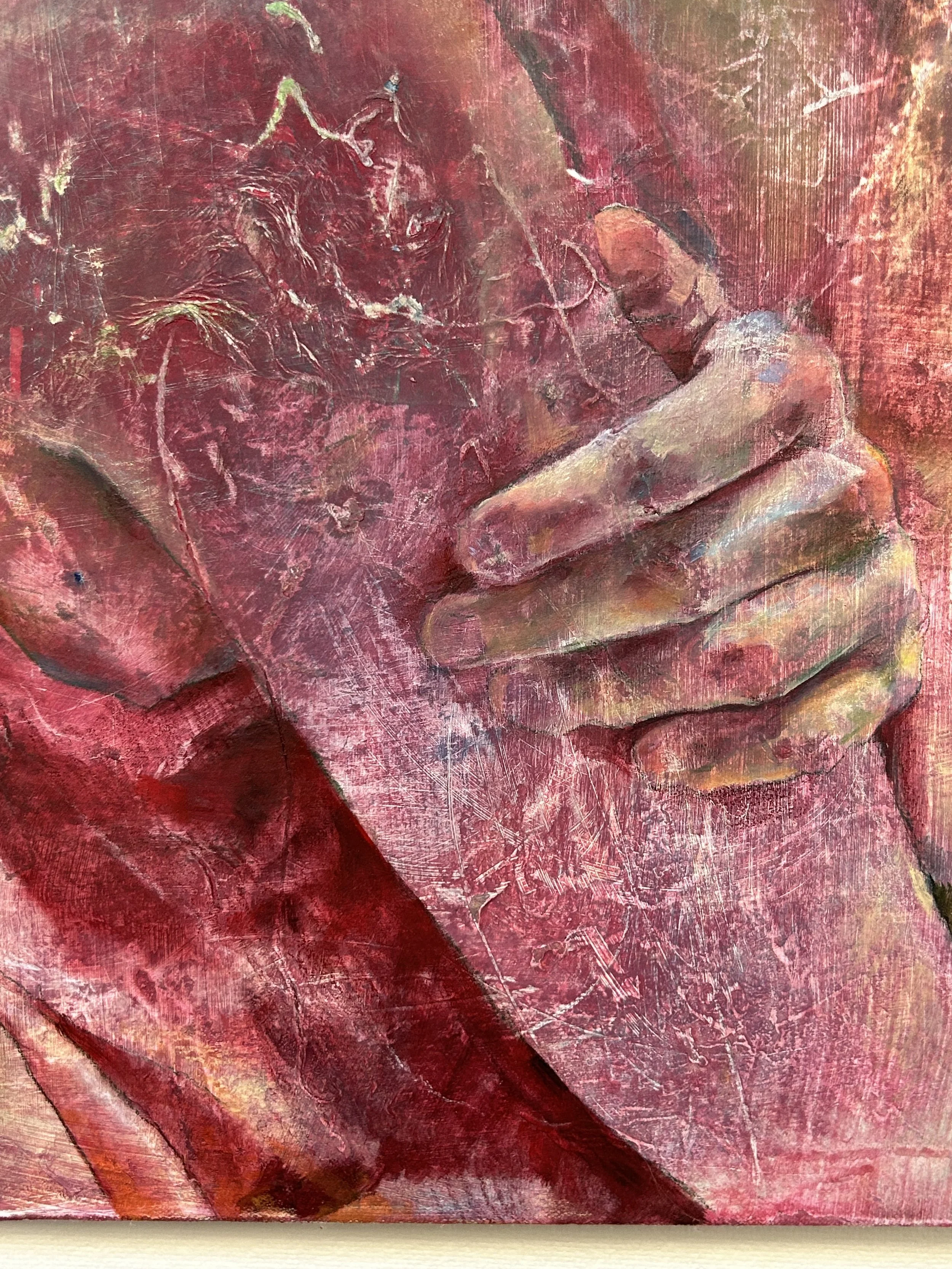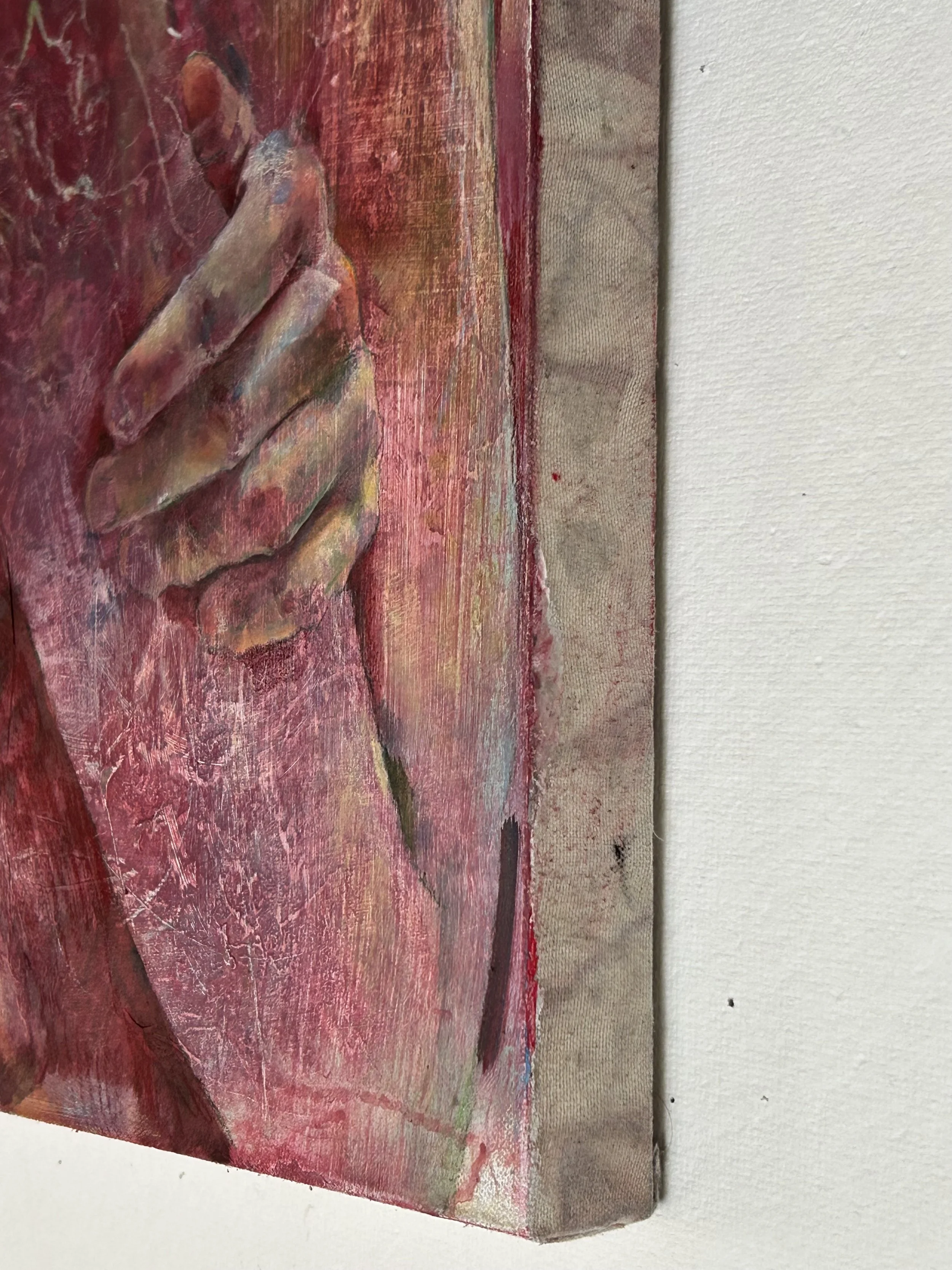 Introspect, Tempera paint, string, paper, oil paint on naturally dyed canvas, 19”x 26”, 2025