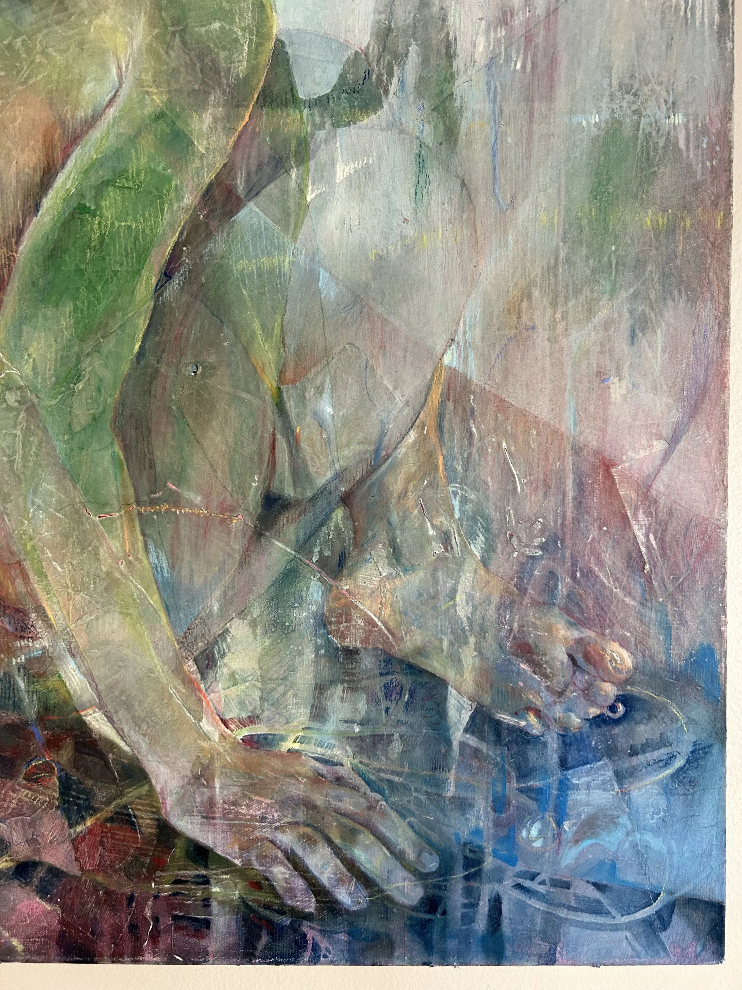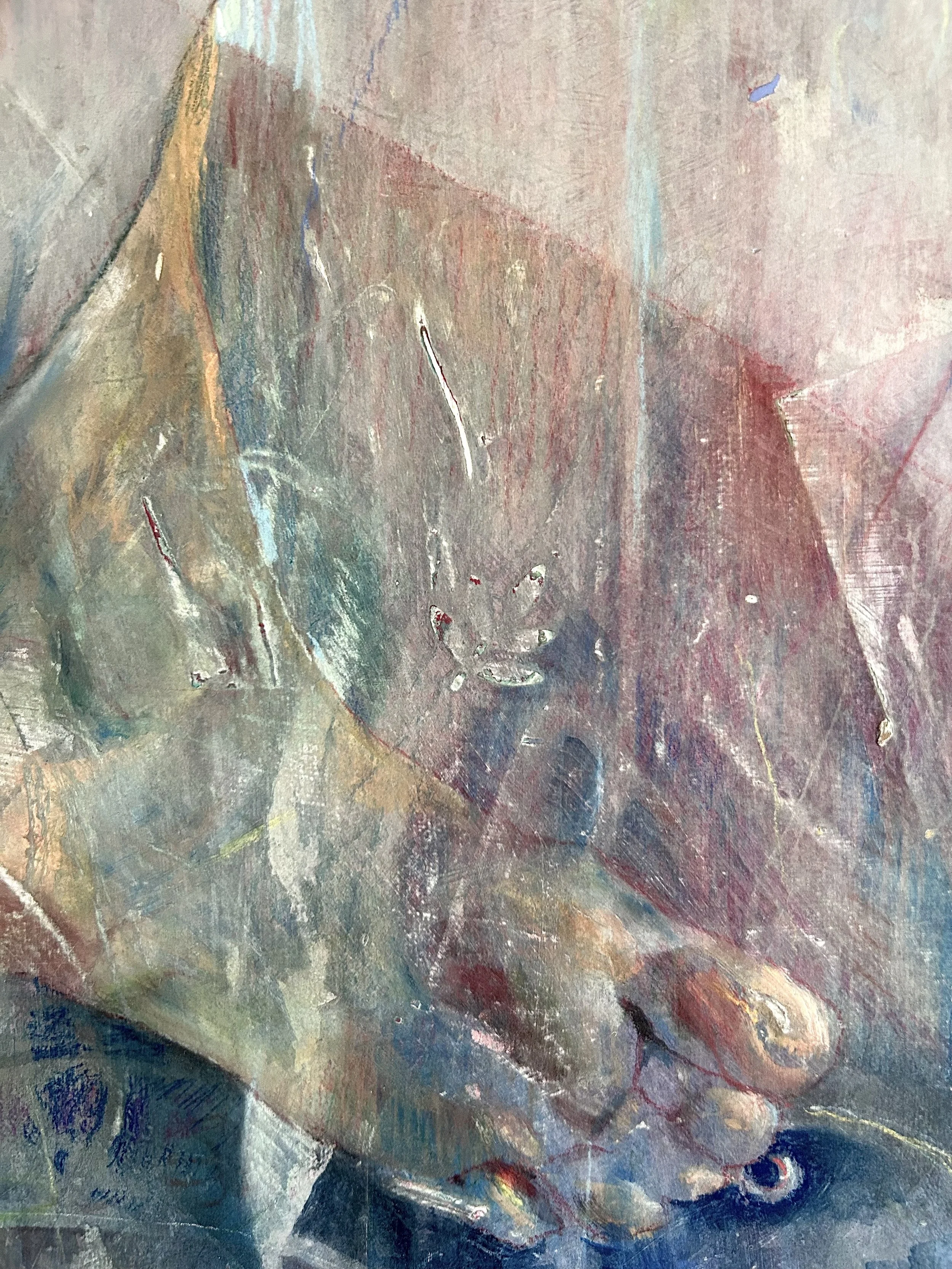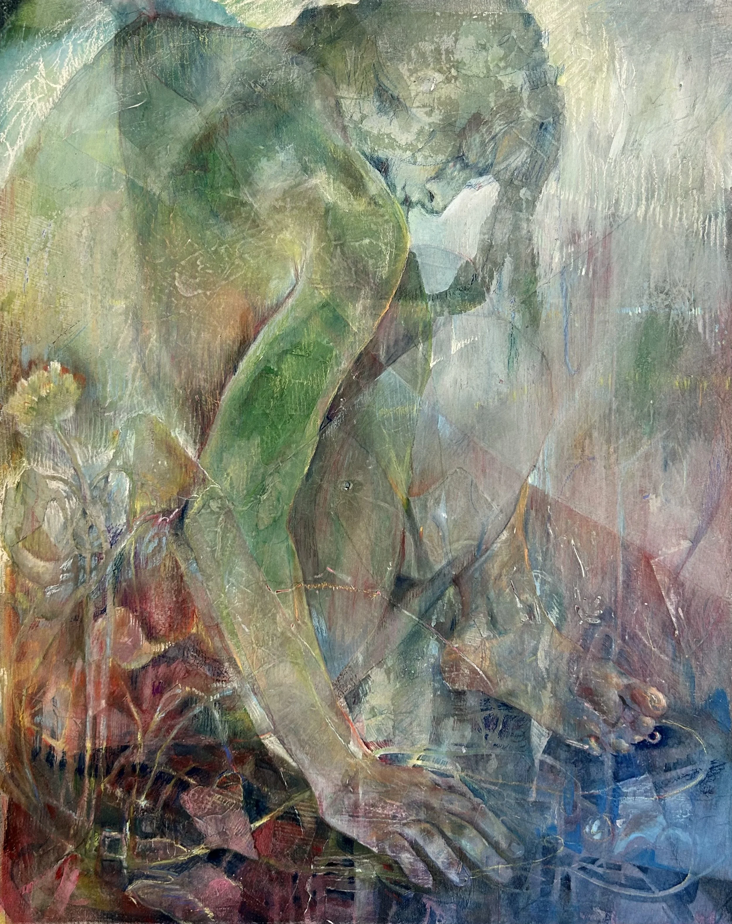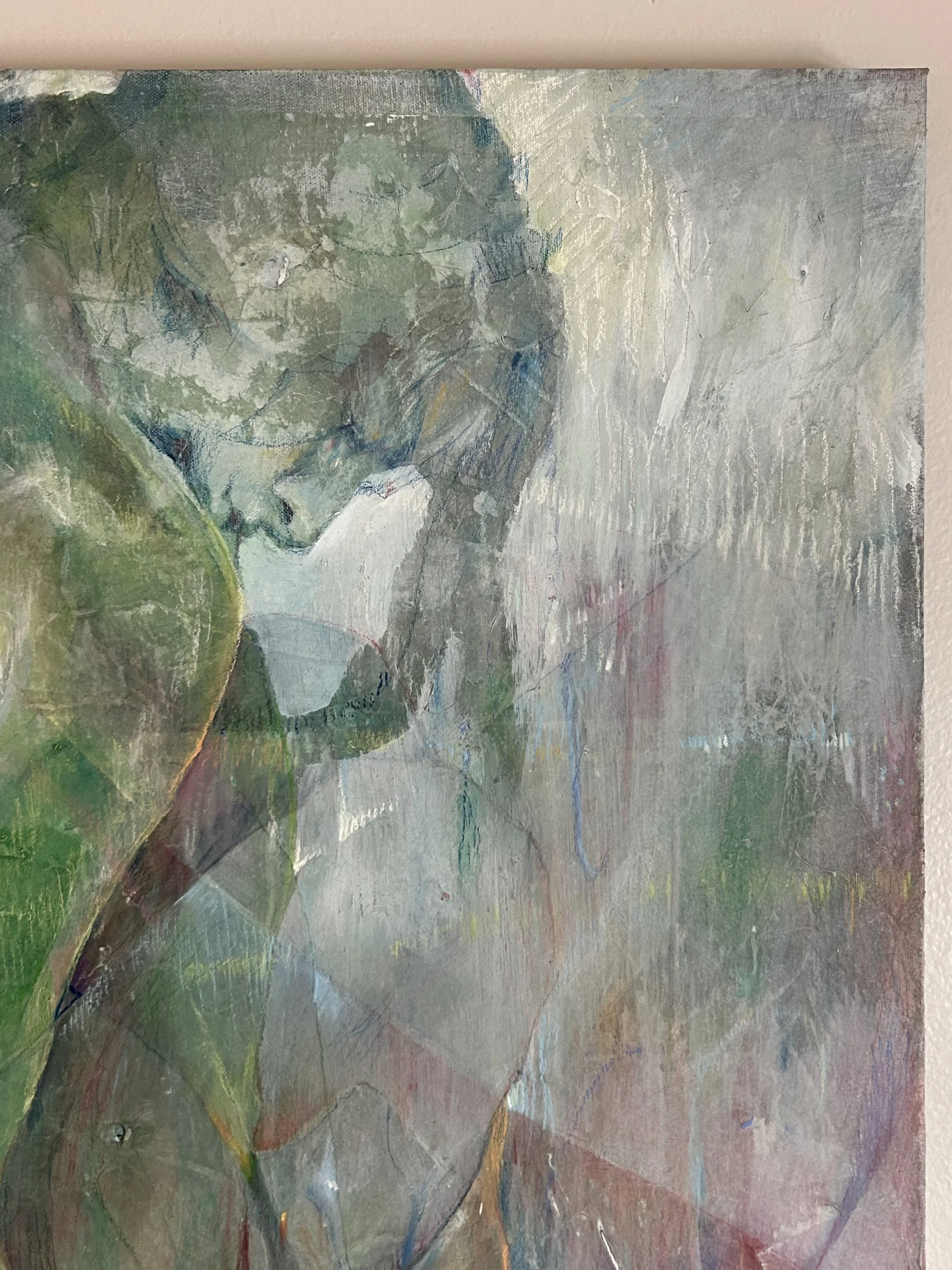, Tempera paint, oil paint, pastels and paper on canvas, 20”x26”, 2025